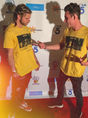 Working out with Playgirl centerfolds, Lance Lemar and Derrick Davenport.